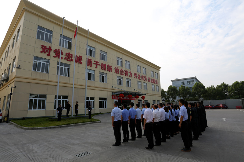 升旗队员迎接微风,手握鲜艳的五星红旗,迈着铿锵矫健整齐的步伐,伴着雄壮激昂的国歌,员工们齐声高唱“起来!不愿做奴隶的人们!把我们的血肉, 筑成我们新的长城……”一边目送国旗冉冉升起,为伟大昌盛、繁荣富强的祖国送上最深情的祝福。