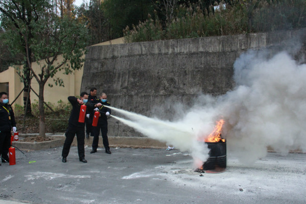 当消防广播响起,公司全体人员沿着指定紧急疏散通道迅速逃生至安全地点,各演练组根据基地消防应急演练实施方案有序地进行人员疏散和紧急救援。随后,在公司行政大楼南侧停车场进行模拟火灾灭火器使用现场教学。