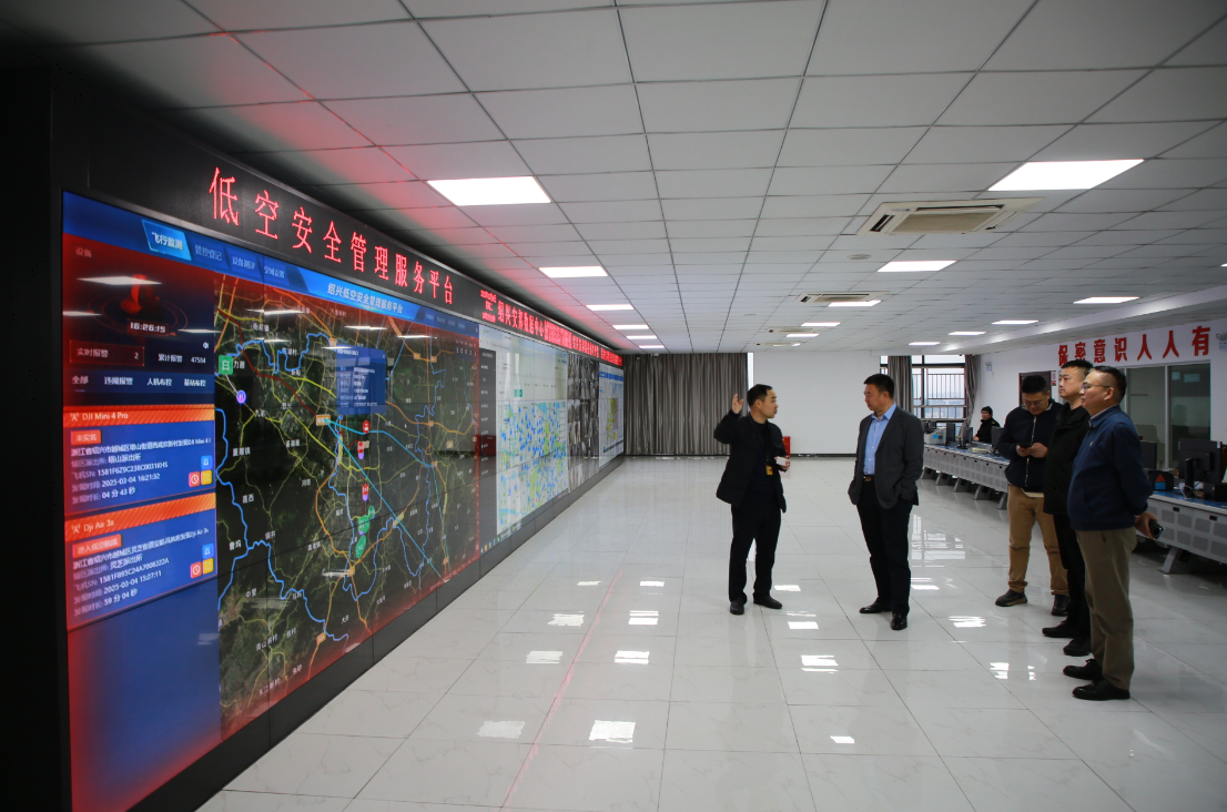 冷伟一行还参观了公司16楼综合信息运维中心,着重了解了公司无人机信息采集前端部署设备和监管平台的详细情况。公司相关负责人介绍,公司紧紧抓住国家低空经济发展风口,依托全域物联网技术优势,联合构建了无人机管控感知网络和前端信息采集设备,实现了对民用无人机的快速定位、动态跟踪和精准查控,协助公安机关打造的低空安全管理服务平台也进一步整合了无人机注册信息、设备信息和飞行数据等重要信息,实现了对区域无人机的全域、全息、全链条监测管控,为绍兴市低空经济的高质量发展打造了“安全底座”。