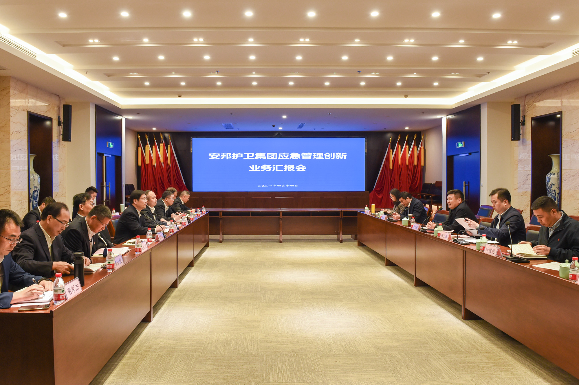 4月14日,浙江省应急管理厅党委书记、厅长凌志峰,党委委员、副厅长陈玉锋率有关处室负责人莅临安邦护卫集团股份有限公司调研指导。