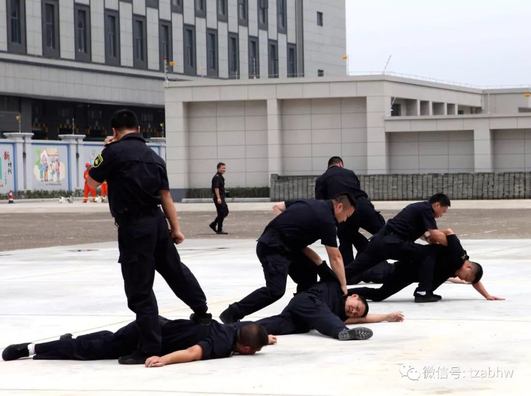 单个军人队列动作、班队列和擒敌拳组成的综合技能演练由公司三个大队的队员们表演。整齐的步伐,标准的动作,高昂的精气神获得了现场领导和客户的阵阵掌声。