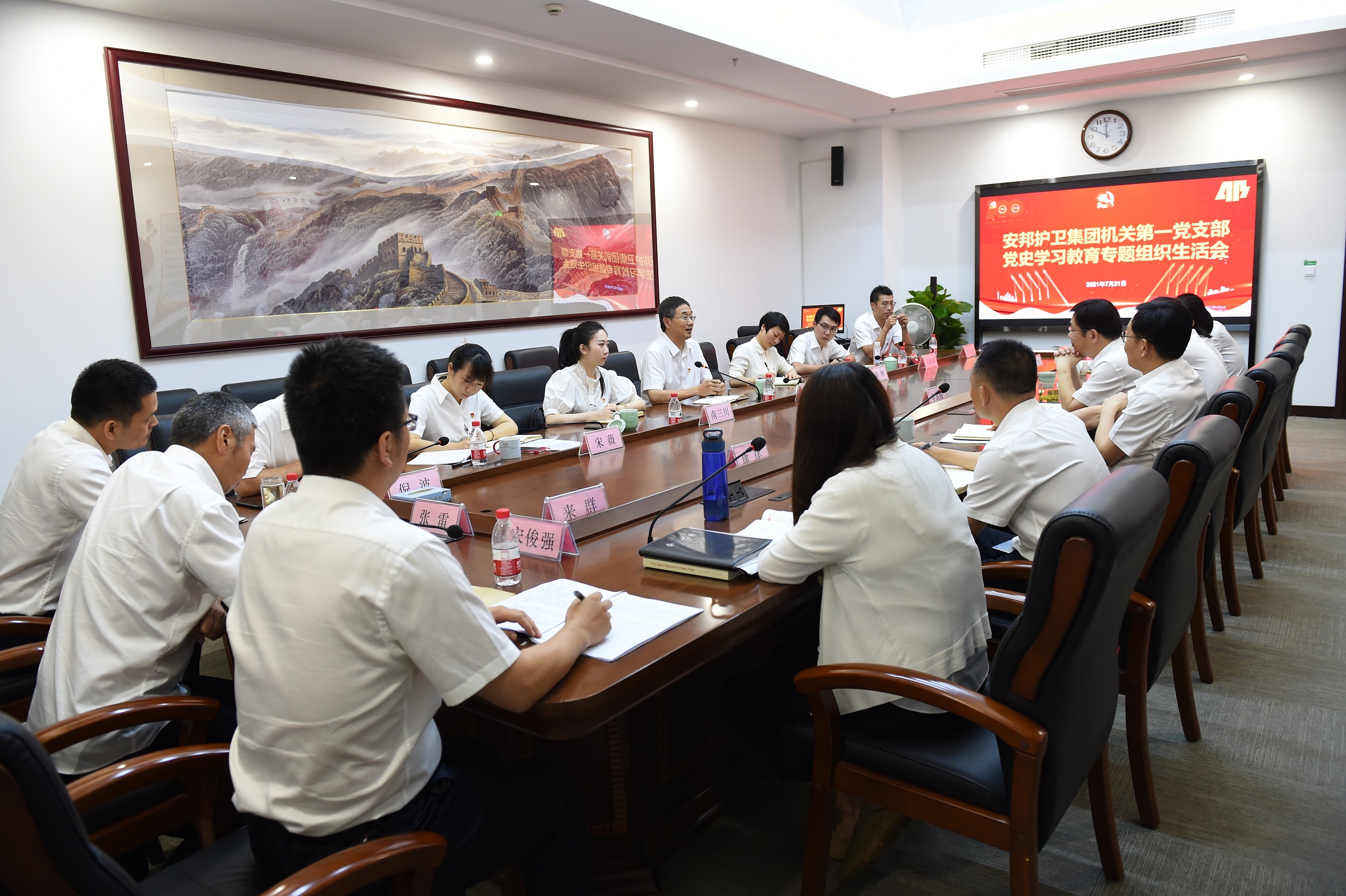 7月21日上午,安邦护卫集团机关党委第一党支部召开党史学习教育专题组织生活会,集团党委书记、董事长、党史学习教育领导小组组长吴高峻,党委副书记余兴才,党委委员、副总经理骆金海以普通党员身份参加会议,同支部党员们一起,学习贯彻习近平总书记在庆祝中国共产党成立100周年大会上的重要讲话精神,交流学习体会,检视问题不足,深刻剖析原因,明确整改措施,进一步推动党史学习教育深入开展。省属企业党史学习教育第三巡回指导组列席会议。