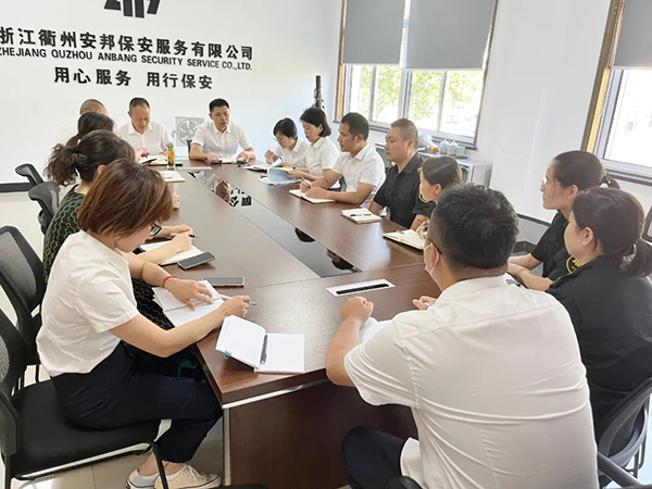 队伍管理分析。9月23日,安邦保安公司召开队伍管理分析会。衢州安邦护卫党委副书记、纪委书记马洪庆,党委委员、副总经理郑胜,安邦保安公司总经理席霞、副总经理金国飞及相关队伍负责人参加。