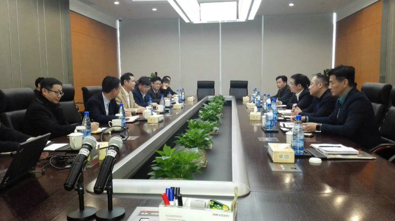董事长一行先后实地参观了海康威视系列产品展示,听取了海康威视与浙江安邦护卫的合作展望,随后进行了继去年12月16日签订战略合作框架协议之后的新一轮会谈,双方就业务合作、技术支持、资本运作等方面合作进行了深入交流,并达成构建“物联网+安全”产业的共识。海康威视董事长陈宗年、副总裁傅柏军等中高层领导参加了会谈。