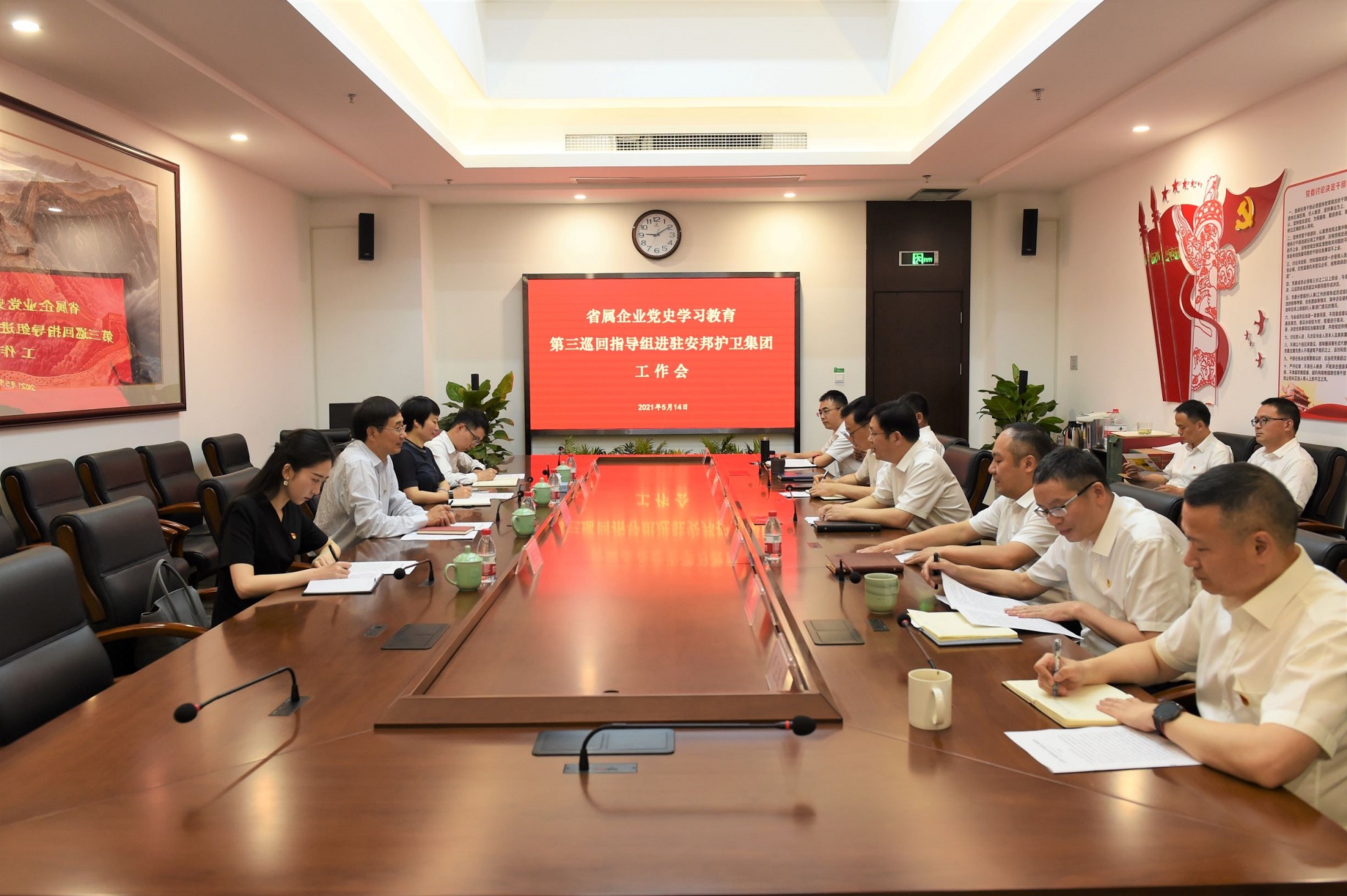5月14日上午,省属企业党史学习教育第三巡回指导组进驻安邦护卫集团并召开工作会,听取集团党史学习教育工作开展情况,部署进驻督导及下阶段相关工作。