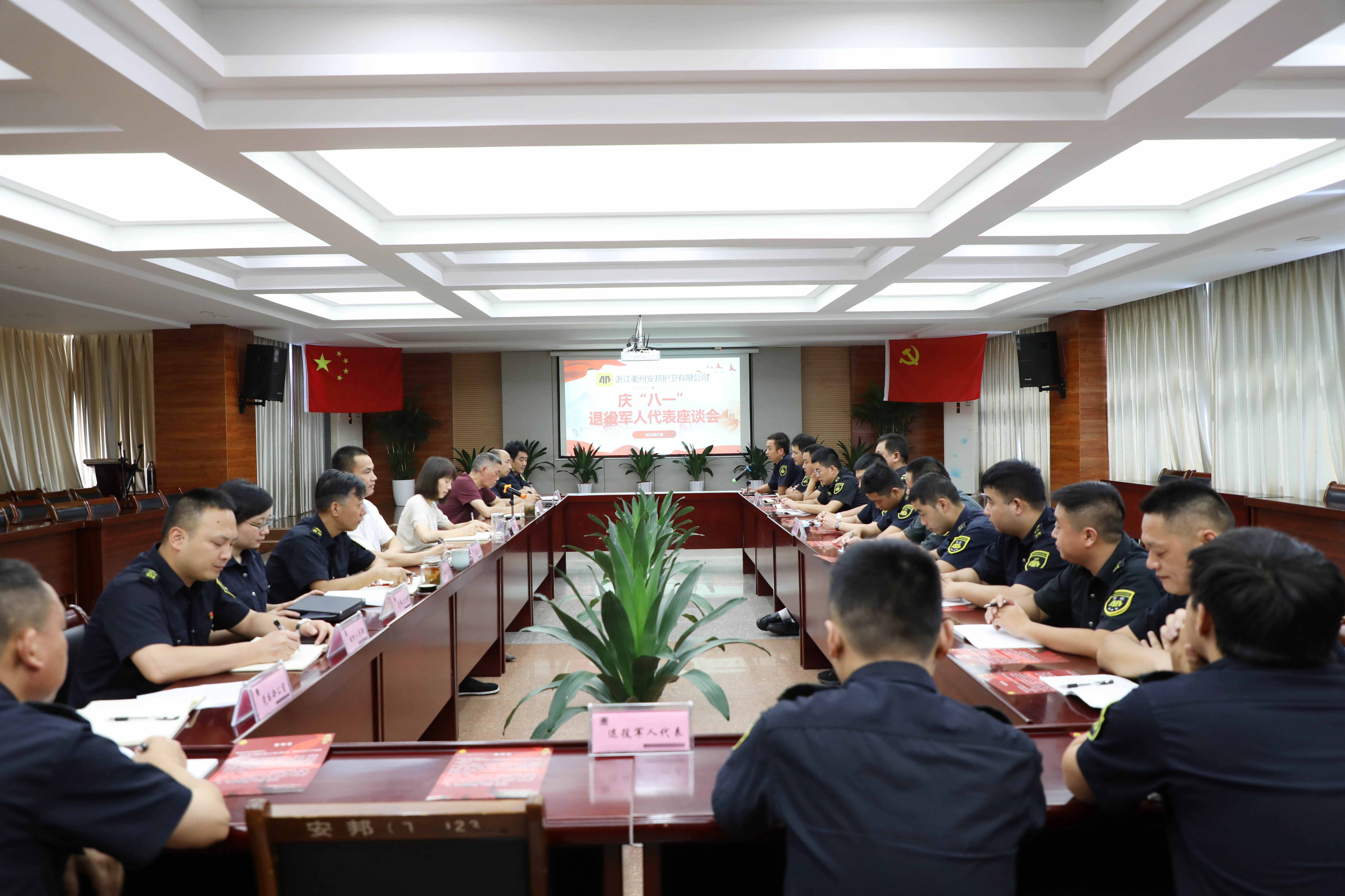 7月31日,浙江衢州安邦护卫有限公司召开庆“八一”退役军人代表座谈会,公司党委班子成员,守押大队、党群工作部、组织人事部、保安公司相关负责人和退役军人代表参加。