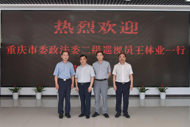 7月5日,重庆市委政法委二级巡视员王林业一行,莅临宁波公司参观考察。宁波市委政法委二级巡视员周建飞,安邦护卫集团党委委员、副总经理郭子仪,公司党委书记、董事长、总经理陈迪华陪同。