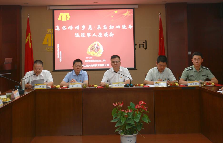 为庆祝中国人民解放军建军九十二周年,进一步凝聚退役军人积极向上的力量,激发退役军人干事创业动力,7月31日上午,绍兴安邦护卫召开“追忆峥嵘岁月、不忘初心使命”退役军人座谈会。绍兴市退役军人事务局拥军优抚处处长杜峰,越城区灵芝街道人武部部长黄烨、副部长褚欣创参加座谈。会议由公司党委副书记、副总经理马华钢主持。