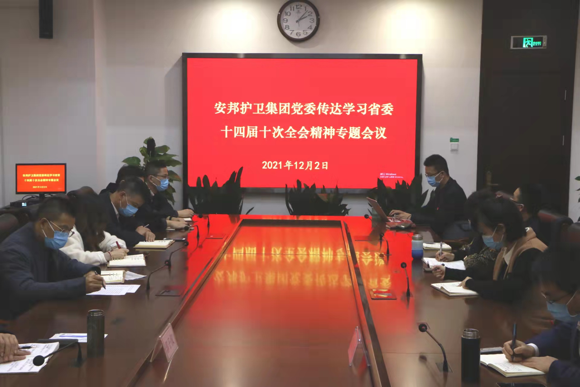 12月2日,安邦护卫集团党委召开专题会议,传达学习贯彻省委十四届十次全体(扩大)会议精神,结合集团实际研究布置贯彻落实工作。集团党委书记、董事长吴高峻主持会议并讲话,集团党委领导班子成员出席会议。