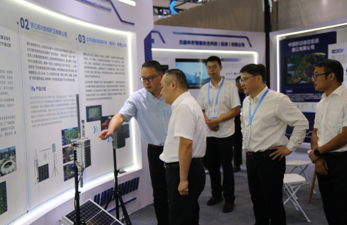 博览会期间,省厅相关领导及集团公司领导亲临“筑牢安全底座,护航低空经济”主题展区,深入了解了公司无人机信息采集设备。通过现场互动体验,领导们对公司在无人机安全管理领域的创新技术给予了高度评价。