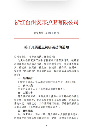 【蹲点调研一】台州安邦护卫扎实开展蹲点调研活动