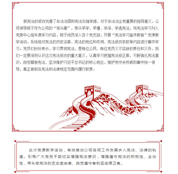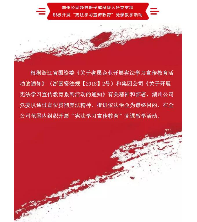 湖州公司领导班子成员深入各党支部积极开展“宪法学习宣传教育”党课教学活动