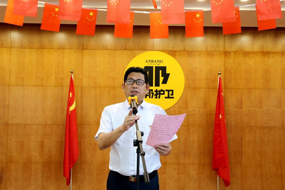 公司党委书记、董事长徐建国致开幕词,他指出,今年是新中国成立70周年,具有重大的历史意义。从1949年到2019年,在70年的历史进程中,我们在党的领导下经历了许多难忘的岁月,取得了无数辉煌的胜利。希望通过本次歌咏比赛,共同纪念祖国的生日,重温光辉历程,传承优良传统,进一步增强各级党组织的凝聚力和战斗力,激励全体干部员工坚定理想信念、增强使命担当,传承安邦精神,提振士气、不忘初心、继续前进,以优异的成绩向祖国70华诞献礼。