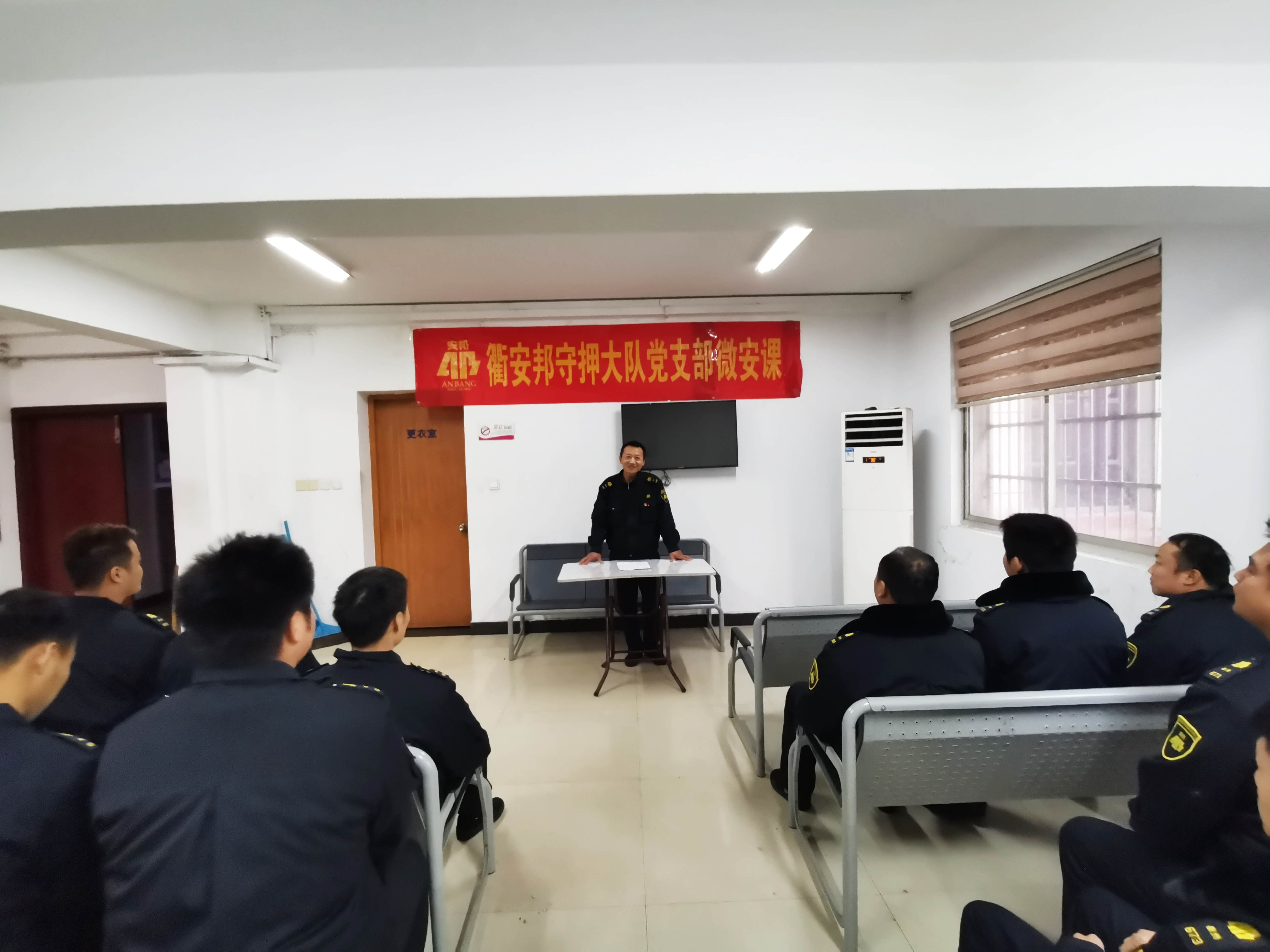 12月24日下午,浙江衢州安邦护卫有限公司守押大队党支部“微安课”活动走进市区押运车组片区,市区片待命车组队员参与了此次活动。党员徐陈云讲授主题为“把平凡的事做好就是不平凡”的微安课。