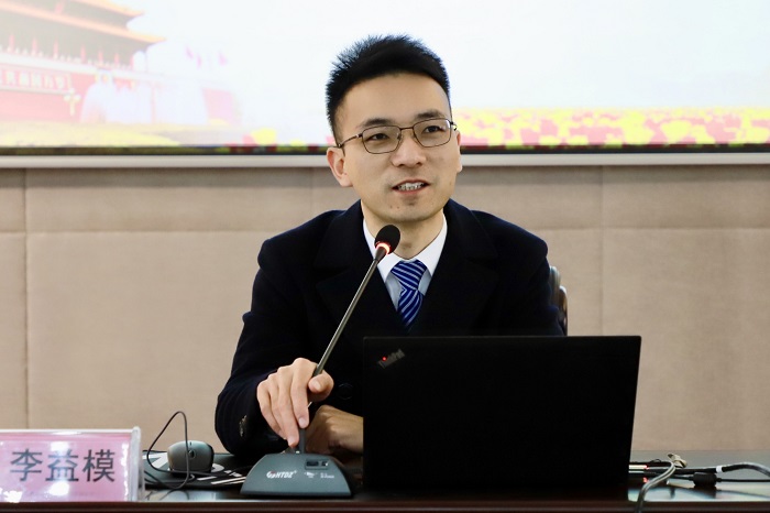 李益模副教授兼任嘉兴市党建研究会理事,嘉兴红船宣讲团成员,在报告会上以《中国共产党与中国道路100年》为题作专题党课。他从“百年历程”“理论探讨”“现实启迪”三个方面,带领广大党员干部职工重温了中国共产党从红船起航到引领复兴这段波澜壮阔的历史,从中思考“中国共产党为什么能”,从而获得深刻的现实启迪:广大党员干部要学史明理、学史增信、学史崇德、学史力行。