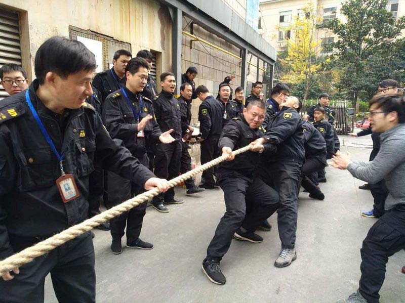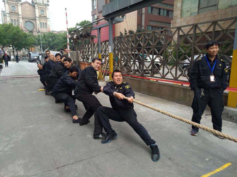 2017年12月7日中午,在市中行停车场上空传出阵阵呐喊声、加油声,只见身着安邦制服的员工们个个精神饱满,斗志昂扬,紧握长绳,你拉我扯,气氛热烈异常,这是中行大队组织员工拔河比赛的现场,60余名员工参加了这次比赛。
