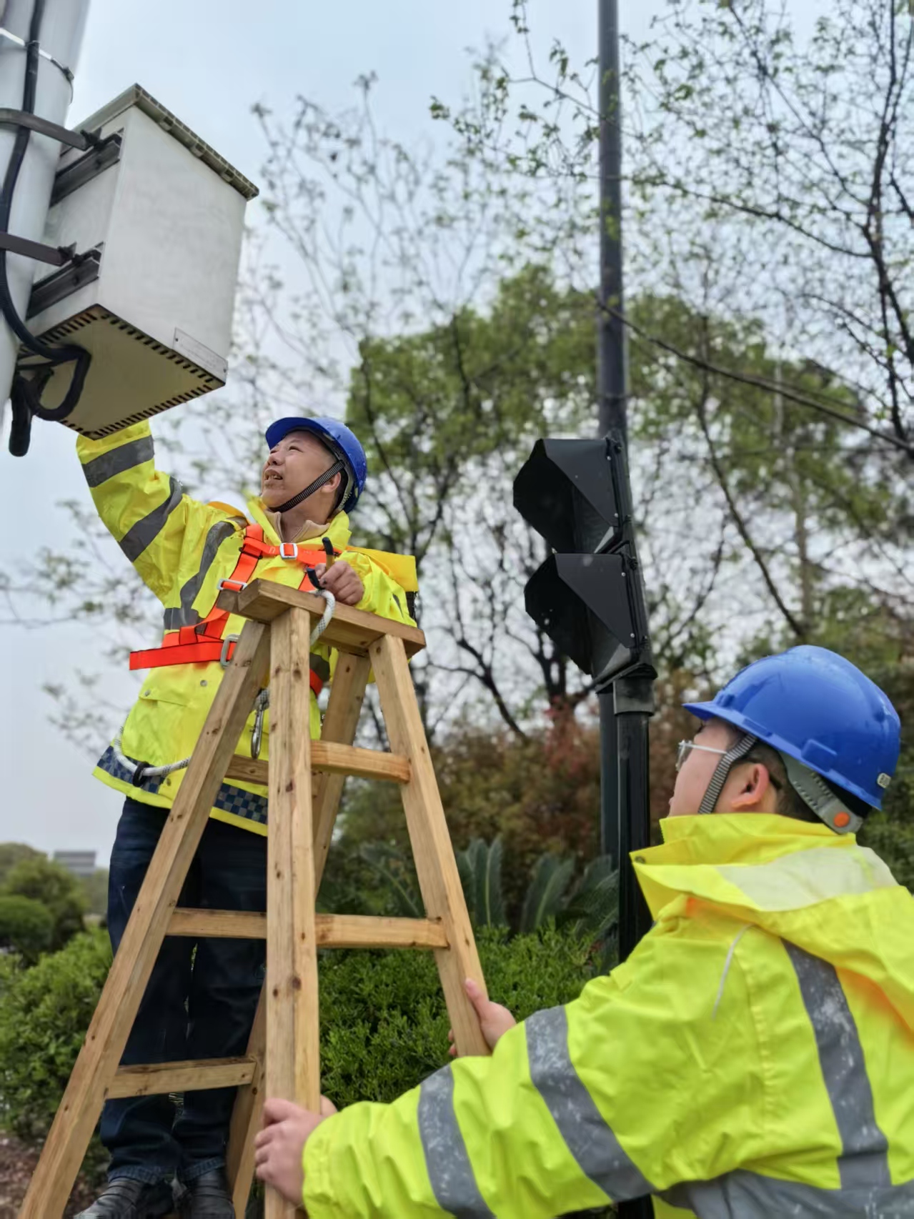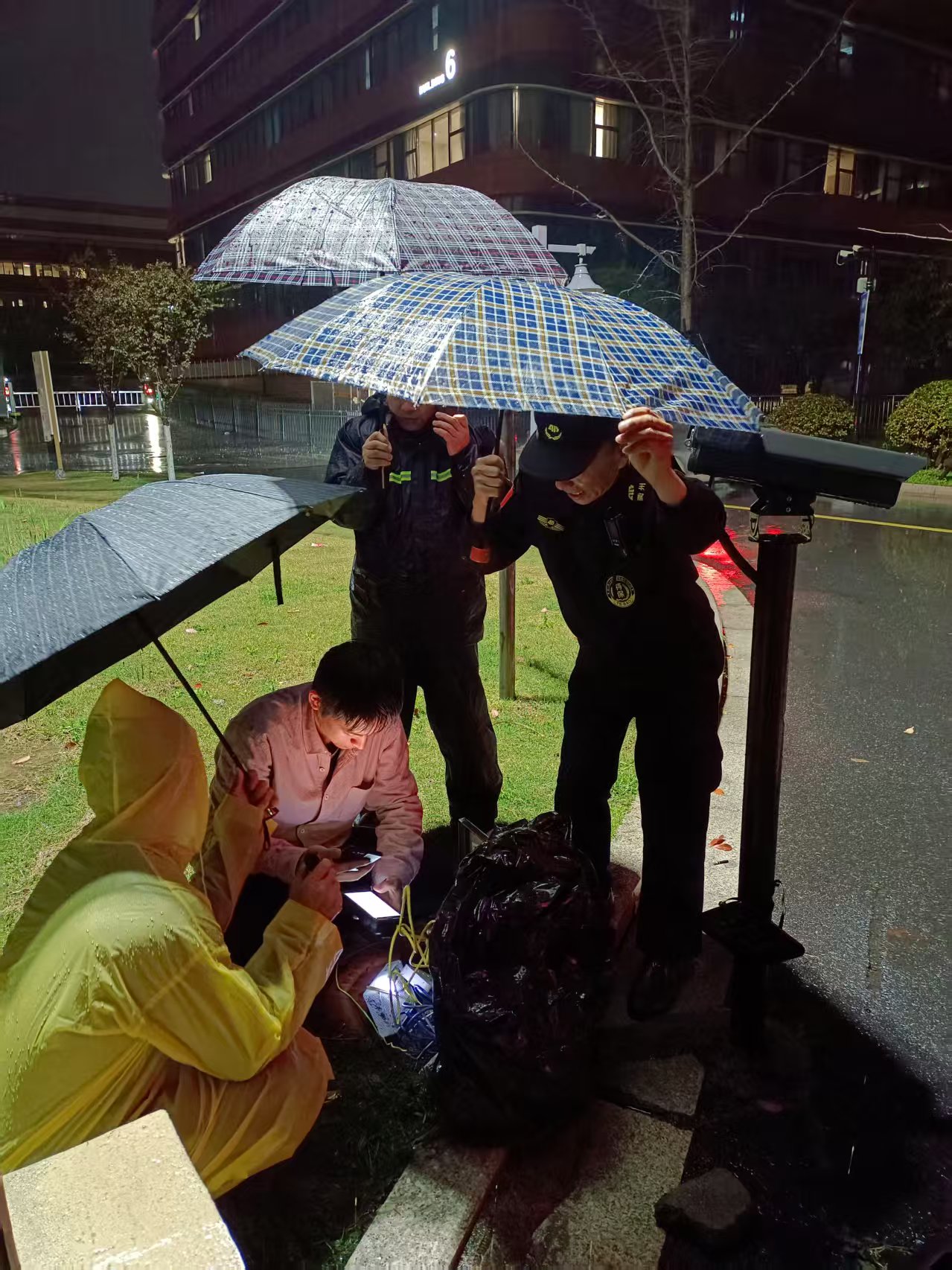 一、技术抢修保运转。近日,衢州市遭遇强对流天气,暴雨如注,给城市带来了严峻的考验。短时强降雨致使衢州市区各大路面安防设备出现多处故障,严重影响城市安全与市民出行。衢州安邦护卫科技防护部技术人员在接到故障报告后,立即启动应急预案,携带专业设备和工具,第一时间奔赴各个故障现场,争分夺秒展开抢修工作。他们仔细排查每一处故障点,确定故障原因,并制定出科学合理的抢修方案。凭借扎实的专业知识和丰富的实践经验,有条不紊地进行维修和调试,更换高处受损的监控设备,修复被雨水浸泡的线路等。经过多个小时的艰苦奋战,技术人员成功修复30余处故障设备,使衢州市区的路面安防系统恢复正常运行。