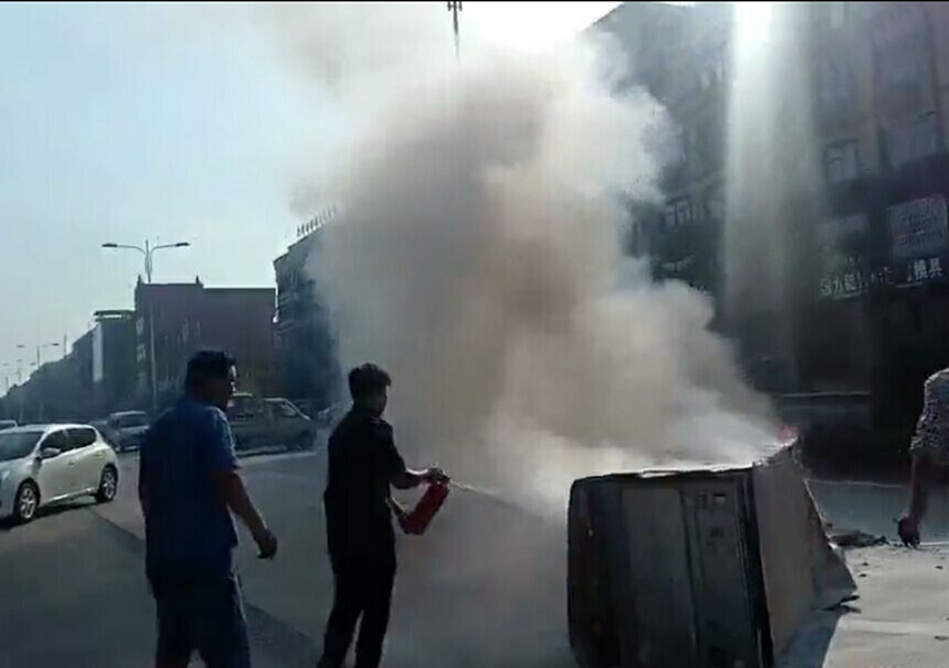 当天下午16时,安邦公司永康农商行中队浙G7D372车组前往行方接款,途经永康市第二人民医院附近时,发现一辆面包车冒着滚滚浓烟,疑似车辆自燃,且火势越来越大,若不及时处置,或造成人员伤亡及重大财产损失。