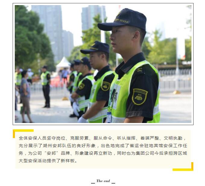 湖州安邦护卫公司圆满完成省运会安保工作任务