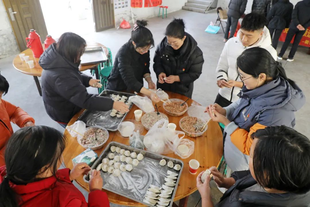 党员干部与村民们围在一起,共同包起了团圆饺。大家手法娴熟,分工协作。不一会儿,一个个饱满的饺子摆满了桌面。在欢声笑语中,大家与村民们拉近了距离,不仅交流了包饺子的技巧,更分享了生活中的点滴趣事,现场洋溢着浓浓的温情。