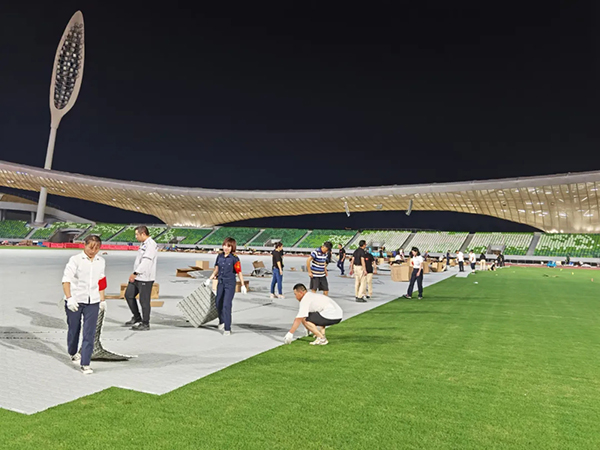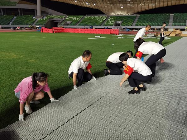 9月30日晚,浙江衢州安邦护卫有限公司党委带领党员、发展对象、积极分子及公司团员青年在衢州市体育中心开展劳动志愿活动,协助衢州珠江文体工作人员在足球场铺设草坪护板,护航浙江省第四届体育大会,用劳动迎接祖国72周年华诞。