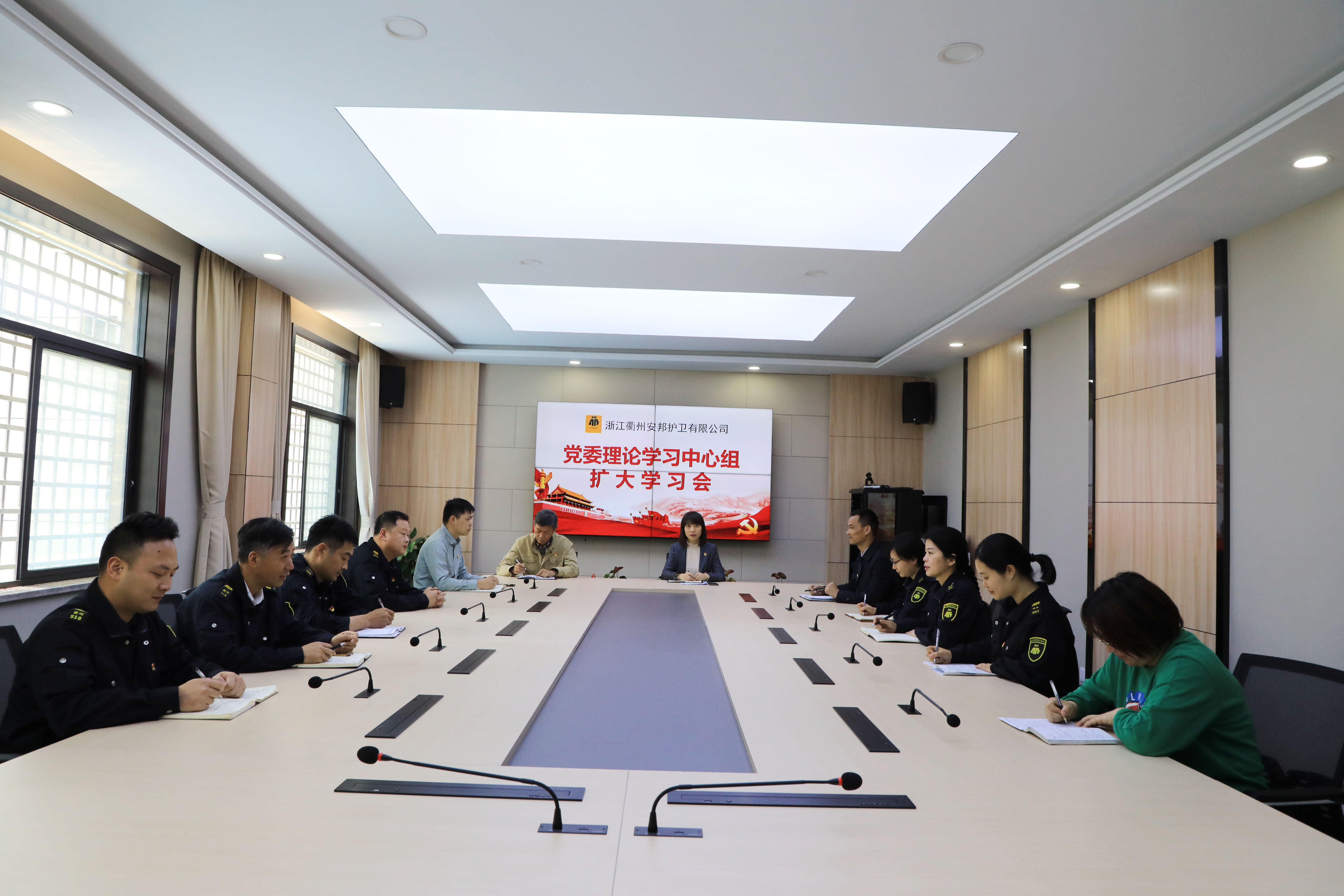 4月26日下午,浙江衢州安邦护卫有限公司召开党委理论学习中心组(扩大)学习会,公司党委班子,中层副职以上管理人员参加会议。